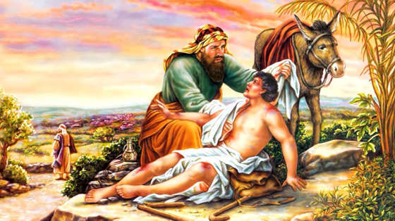 “Một người đi từ Giêrusalem xuống Giêricô, và rơi vào tay bọn cướp; chúng bóc lột người ấy, đánh nhừ tử rồi bỏ đi, để người ấy nửa sống nửa chết. Tình cờ một tư tế cũng đi qua đường đó, trông thấy nạn nhân, ông liền đi qua. Cũng vậy, một trợ tế khi đi đến đó, trông thấy nạn nhân, cũng đi qua. Nhưng một người xứ Samaria đi đường đến gần người ấy, trông thấy và động lòng thương. Người đó lại gần, băng bó những vết thương, xức dầu và rượu, rồi đỡ nạn nhân lên lừa mình, đưa về quán trọ săn sóc. Hôm sau, lấy ra hai quan tiền, ông trao cho chủ quán mà bảo rằng: ‘Ông hãy săn sóc người ấy và ngoài ra, còn tốn phí hơn bao nhiêu, khi trở về, tôi sẽ trả lại ông’. Theo ông nghĩ, ai trong ba người đó là anh em của người bị rơi vào tay bọn cướp?” Người thông luật trả lời: “Kẻ đã tỏ lòng thương xót với người ấy”. Và Chúa Giêsu bảo ông: “Ông cũng hãy đi và làm như vậy”.