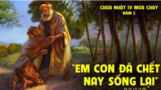 Bấy giờ Người phán bảo họ dụ ngôn này: “Người kia có hai con trai. Ðứa em đến thưa cha rằng: “Thưa cha, xin cha cho con phần gia tài thuộc về con”. Người cha liền chia gia tài cho các con. Ít ngày sau, người em thu nhặt tất cả tiền của mình trẩy đi miền xa và ở đó ăn chơi xa xỉ, phung phí hết tiền của. Khi nó tiêu hết tiền của, thì gặp nạn đói lớn trong miền đó và nó bắt đầu cảm thấy túng thiếu. Nó vào giúp việc cho một người trong miền, người này sai nó ra đồng chăn heo. Nó muốn ăn những đồ heo ăn cho đầy bụng, nhưng cũng không ai cho. Bấy giờ nó mới hồi tâm lại và tự nhủ: “Biết bao người làm công ở nhà cha tôi được ăn uống dư dật, còn tôi, tôi ở đây phải chết đói! Tôi muốn ra đi, trở về với cha tôi và thưa người rằng: “Lạy cha, con đã lỗi phạm đến Trời và đến cha; con không đáng được gọi là con cha nữa, xin cha đối xử với con như một người làm công của cha”. Vậy nó ra đi và trở về với cha nó. Khi nó còn ở đàng xa, cha nó chợt trông thấy, liền động lòng thương; ông chạy lại ôm choàng lấy cổ nó và hôn nó hồi lâu. Người con trai lúc đó thưa rằng: “Lạy cha, con đã lỗi phạm đến Trời và đến cha; con không đáng được gọi là con cha nữa”. Nhưng người cha bảo các đầy tớ: “Mau mang áo đẹp nhất ra đây và mặc cho cậu; hãy đeo nhẫn vào ngón tay cậu, và xỏ giày vào chân cậu. Hãy bắt con bê béo làm thịt để chúng ta ăn mừng, vì con ta đây đã chết, nay sống lại, đã mất nay lại tìm thấy”. Và người ta bắt đầu ăn uống linh đình.
