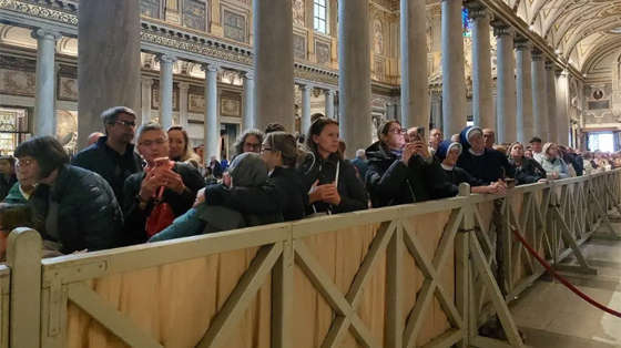 Gần đến lối ra của vương cung thánh đường, Estela đến gần, cô cười rất nhiều, đây là lần đầu tiên cô đến Rôma và cô bị choáng ngợp bởi vẻ đẹp quá nhiều. Cô là người Mexico nhưng sống ở Hoa Kỳ. “Đối với tôi, Đức Thánh Cha Phanxicô là một thiên thần tuyệt vời, tôi rất yêu quý ngài, ngài luôn gây ấn tượng với tôi bởi việc ngài nhìn mọi người theo cùng một cách, dù bạn là người da vàng, da đen, nam hay nữ, đối với ngài mọi người đều bình đẳng, vì tất cả chúng ta đều bình đẳng trước mắt Thiên Chúa.” Trời không còn mưa, mặt trời xuất hiện, những người hành hương cất ô và áo mưa, tiếp tục xếp hàng, quyết tâm tỏ lòng tôn kính Đức Thánh Cha Phanxicô bằng cách mang đến cho ngài món quà là những kỷ niệm, những mối quan tâm và suy nghĩ của họ, nhưng trên hết là những lời cầu nguyện chân thành của họ.