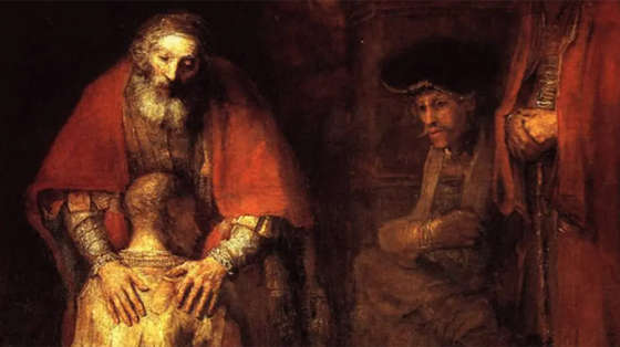 Hình dáng đôi tay người cha ôm lấy đứa con lạc lối, mái đầu trần của đứa con tựa vào ngực cha, hay ánh mắt xa xăm, trầm ngâm của người anh trai, tất cả những yếu tố này mời gọi ta bước vào mối thân tình của Thiên Chúa và cho ta chạm đến mầu nhiệm lòng thương xót của Thiên Chúa, bằng đôi mắt của mình.