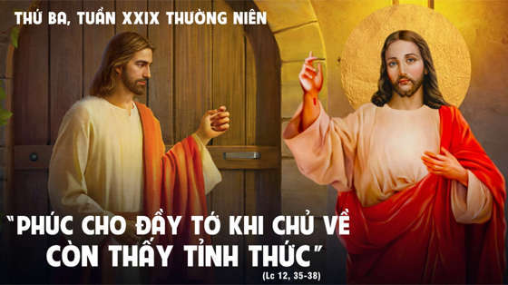 Khi ấy, Chúa Giêsu phán cùng các môn đệ rằng: “Các con hãy thắt lưng, hãy cầm đèn cháy sáng trong tay, và hãy làm như người đợi chủ đi ăn cưới về, để khi chủ về gõ cửa, thì mở ngay cho chủ. Phúc cho những đầy tớ nào khi chủ về còn thấy tỉnh thức. Thầy bảo thật các con, chủ sẽ thắt lưng, xếp chúng vào bàn ăn, và đi lại hầu hạ chúng. Nếu canh hai hoặc canh ba, chủ trở về mà gặp thấy như vậy, thì phúc cho các đầy tớ ấy”.