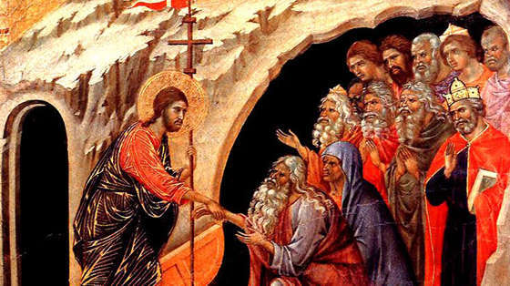 Hôm nay mặt đất hoàn toàn thinh lặng, hoàn toàn thinh lặng và hoàn toàn cô quạnh. Hoàn toàn thinh lặng vì Ðức Vua an giấc. Trái đất run rẩy rồi yên tĩnh lại, vì Thiên Chúa đang ngủ trong xác phàm và Người đi đánh thức những kẻ đang ngủ từ bao đời … Người đi tìm nguyên tổ A-đam như tìm con chiên lạc. Người muốn thăm viếng tất cả những ai đang ngồi trong tối tăm và trong bóng sự chết. Vừa là Thiên Chúa, vừa là con cháu của nguyên tổ, Người đi giải thoát A-đam và E-và đang đau khổ trong gông cùm xiềng xích … “Ta là Chúa của ngươi, nhưng vì ngươi, Ta đã trở thành con của ngươi. Hỡi người ngủ mê, hãy chổi dậy ! vì Ta dựng nên ngươi không phải để cho ngươi ở lại đây trong gông cùm âm phủ. Hãy chỗi dậy từ cõi chết, vì Ta là sự sống của những kẻ đã chết (Bài giảng cổ vào thứ bảy tuần thánh)”.
