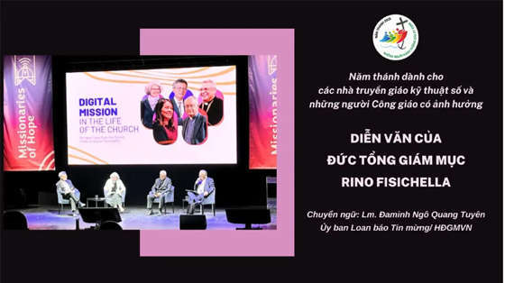 Trong dịp Năm thánh dành cho các nhà truyền giáo kỹ thuật số và những người Công giáo có ảnh hưởng diễn ra tại Vatican từ ngày 28-29/7/2025, Đức Tổng Giám mục Rino Fisichella – Chủ tịch Phân bộ thứ nhất của Bộ Loan báo Tin mừng đã có bài diễn văn dành cho các tham dự viên.Trong bài diễn văn, Đức Tổng Giám mục nhấn mạnh rằng loan báo Tin mừng không chỉ hệ tại ở nội dung, mà trước hết là ở con người – người loan báo và người được nghe loan báo. Dựa trên lời ngôn sứ Isaia và lời của Đức Thánh Cha Phaolô VI, Đức Tổng Giám mục Fisichella nhắc nhớ rằng: Ngày nay, chúng ta không chỉ cần những người có ảnh hưởng (‘influencer’), mà cần những ‘chứng nhân’ đáng tin có khả năng cho thấy khuôn mặt của Niềm Hy Vọng là chính Đức Kitô. Trong thế giới kỹ thuật số, người loan báo được mời gọi trở thành dụng cụ của ân sủng Thiên Chúa, biết trân trọng cuộc gặp gỡ cá vị, thinh lặng và lắng nghe như những con đường chân thật để khơi nguồn đức tin. Thách đố ở đây là kết hợp công việc truyền thông hiệu quả với chiều sâu thiêng liêng, để sự hiện diện Kitô giáo trên Internet trở nên dấu chỉ của sự hiệp thông và sống Tin mừng. Sau đây là toàn văn bản dịch Việt ngữ bài diễn văn của Đức Tổng Giám mục Fisichella.