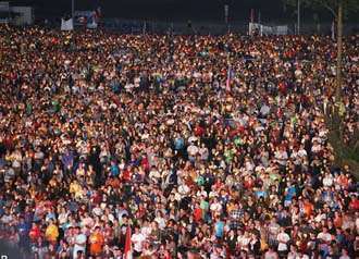 Sau phần ca nhạc và chia sẻ, cha Joseph Espaillat, thuôci tổng giáo phận New York, MC của buổi khai mạc đã hướng dẫn 20 ngàn bạn trẻ trong giây phút cầu nguyện thinh lặng. Cha gợi ý dùng các ký tự trong chữ PRAY, cầu nguyện, trong tiếng Anh, để các bạn trẻ hướng dẫn kinh nguyện của họ. “P” ngợi khen Chúa, “R” thống hối ăn năn tội, “A” xin Chúa những điều cần hơn là điều mình muốn, và “Y” vâng theo ý Chúa.