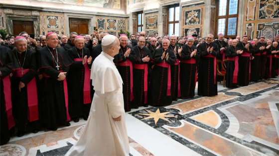 Trong viễn tượng ấy, tôi muốn nhắc lại hành trình hiệp nhất quý giá mà anh em đã khởi sự trong các vùng của mình, đặc biệt qua việc liên kết những thực tại, học viện và chương trình đào tạo trước đây từng hoạt động riêng lẻ. Đây thực sự là một sự hiệp lực quan trọng: một bước tiến lịch sử đích thực, trong đó anh em đang đóng vai trò tiên phong, khi thúc đẩy sự hiệp thông giữa các giáo phận, giúp vượt qua những não trạng cục bộ trước đây và, trên hết, cổ võ một hành trình Giáo hội được ghi dấu bằng sự hiệp nhất và tình huynh đệ. Trên con đường ấy, có thể hình thành một chân trời tư tưởng chung và một sự hội tụ trong việc đối diện với những thách đố mục vụ cũng như những nhu cầu của công cuộc loan báo Tin mừng.