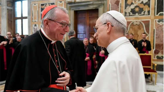 Tôi rất vui khi được ở giữa anh chị em, những người đã cống hiến sự phục vụ quý giá cho đời sống của Giáo hội bằng cách giúp tôi thực hiện sứ mạng được giao phó. Thật vậy, như Tông hiến Praedicate Evangelium khẳng định, Phủ Quốc vụ khanh, với tư cách là Ban Thư ký của Giáo hoàng do Quốc vụ khanh đứng đầu, trợ giúp chặt chẽ cho Đức Giáo hoàng trong việc thực hiện sứ mạng tối cao của ngài (xem các điều 44-45).