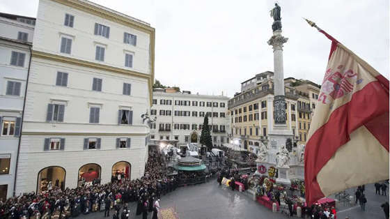 Theo thông báo từ Tòa Thánh, lúc 4h chiều thứ Hai, ngày 08/12, Đức Thánh Cha sẽ đến Quảng trường Mignanelli, nơi đặt tượng Đức Mẹ, gần với Quảng trường Tây Ban Nha ở Roma để dâng lời cầu nguyện và đặt hoa dưới chân tượng đài. Đức Hồng y Giám quản Baldo Reina và Thị trưởng Roma Roberto Gualtieri sẽ đón tiếp ngài.