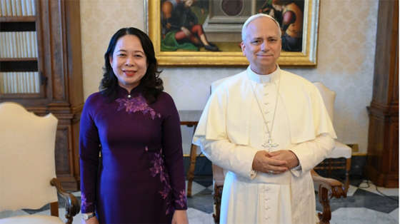 Ngày 30-6, trong khuôn khổ chuyến thăm làm việc tại Ý từ ngày 29-6 đến 1-7, tại Tòa thánh Vatican, Phó chủ tịch nước Võ Thị Ánh Xuân đã đến chào xã giao Giáo hoàng Leo XIV.
