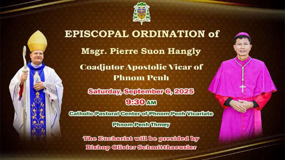 Sáng ngày thứ Bảy, 06 tháng 9 vừa qua, Thánh lễ truyền chức Giám mục cho Cha Pierre Soun Hangly đã được tổ chức trọng thể tại Trung tâm Mục vụ Phnom Penh, quy tụ đông đảo các thành phần Dân Chúa của Giáo hội Công giáo Campuchia và Hội đồng Giám mục Campuchia – Lào; Đức Tổng Giám mục Peter Brian Wells, Sứ Thần Toà Thánh tại Thái Lan kiêm nhiệm Campuchia, Myanmar và Lào; Linh mục Vincent Sénéchal, Bề trên Tổng quyền Hội Thừa sai Paris; đại diện tôn giáo bạn; và đặc biệt có sự hiện diện của đại diện Hội đồng Giám mục Việt Nam cùng các Hồng y, Giám mục từ Malaysia và Myanmar.