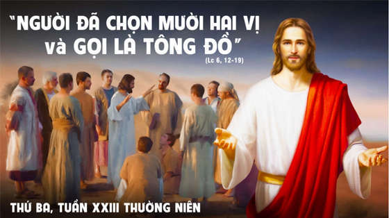 Trong những ngày ấy Chúa Giêsu lên núi cầu nguyện, và suốt đêm Người cầu nguyện cùng Thiên Chúa. Sáng ngày, Người gọi các môn đệ và chọn mười hai vị mà Người gọi là tông đồ: Ðó là Simon mà Người đặt tên là Phêrô và em ông là Anrê, Giacôbê và Gioan, Philipphê và Bartôlômêô, Matthêu và Tôma, Giacôbê con ông Alphê và Simon cũng gọi là nhiệt thành, Giuđa con ông Giacôbê và Giuđa Iscariốt, kẻ phản bội. Người đi xuống với các ông, và dừng lại trên một khoảng đất bằng phẳng, có nhóm đông môn đệ cùng đoàn lũ dân chúng đông đảo từ khắp xứ Giuđêa, Giêrusalem và miền duyên hải Tyrô và Siđôn đến nghe Người giảng và để được chữa lành mọi bệnh tật. Cả những người bị quỷ ô uế hành hạ cũng được chữa khỏi, và tất cả đám đông tìm cách chạm tới Người, vì tự nơi Người phát xuất một sức mạnh chữa lành mọi người.