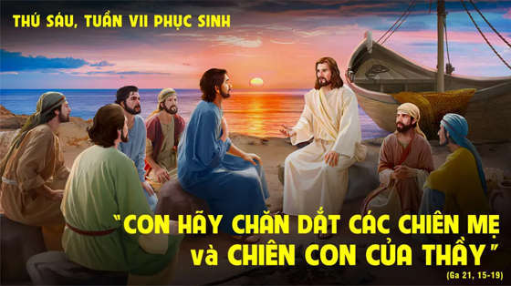 Khi Chúa Giêsu đã tỏ mình ra cho các môn đệ, Người dùng bữa với các ông, và hỏi Simon Phêrô rằng: “Simon, con ông Gioan, con có yêu mến Thầy hơn những người này không?” Ông đáp: “Thưa Thầy: Có, Thầy biết con yêu mến Thầy”. Người bảo ông: “Con hãy chăn dắt các chiên con của Thầy”.