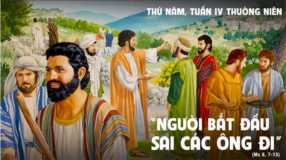 Khi ấy, Chúa Giêsu gọi mười hai tông đồ và sai từng hai người đi, Người ban cho các ông có quyền trên các thần ô uế. Và Người truyền các ông đi đường đừng mang gì, ngoài cây gậy, không mang bị mang bánh, không mang tiền trong túi, nhưng chân đi dép, và đừng mặc hai áo. Người lại bảo: “Ðến đâu, các con vào nhà nào, thì ở lại đó cho đến khi ra đi. Ai không đón tiếp các con, cũng không nghe lời các con, thì hãy ra khỏi đó, phủi bụi chân để làm chứng tố cáo họ”. Các ông ra đi rao giảng sự thống hối. Các ông trừ nhiều quỷ, xức dầu chữa lành nhiều bệnh nhân.