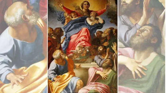 Mầu nhiệm hôm nay được khắc họa trong tác phẩm nghệ thuật của họa sĩ “người Ý” theo trường phái Barốc thế kỷ 16, Annibale Carracci. “L’Assunzione della Vergine – Đức Trinh Nữ Lên Trời – là một phần của bức tranh lớn hơn phía sau bàn thờ tại Nhà thờ Santa Maria del Popolo thuộc Vương cung Thánh đường Rôma.