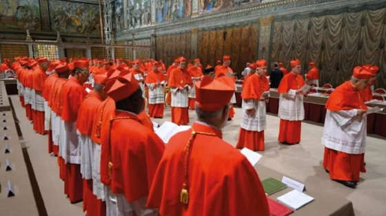 Các Hồng y trước khi bắt đầu mật nghị tại Nhà nguyện Sistine ở Vatican vào ngày 7 tháng 5 năm 2025. VATICAN MEDIA/HO / AFP