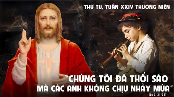 Khi ấy, Chúa Giêsu phán rằng: “Ta sẽ phải nói những người của thế hệ này giống ai đây? Họ giống ai? Họ giống như những đứa trẻ ngồi ngoài đường phố gọi và nói với nhau rằng: “Chúng tôi đã thổi sáo cho các anh, mà các anh không nhảy múa. Chúng tôi đã hát những điệu bi ai, mà các anh không khóc”.
