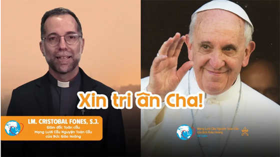 Trong tâm tình tạ ơn, Cha Cristobal Fones, S.J., Giám đốc Quốc tế của Mạng lưới Cầu nguyện Toàn cầu của Đức Giáo Hoàng gửi lời tri ân chân thành đến Đức Thánh Cha Phanxicô – vị mục tử luôn sống và giảng dạy bằng tình yêu, lòng thương xót và lời cầu nguyện.