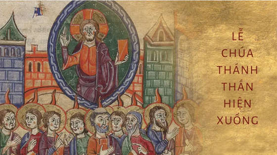 Khi đến ngày lễ Ngũ Tuần, mọi người đang tề tựu ở một nơi, bỗng từ trời phát ra một tiếng động, như tiếng gió mạnh ùa vào đầy cả căn nhà, nơi họ đang tụ họp. Rồi họ thấy xuất hiện những hình lưỡi giống như lưỡi lửa tản ra đậu xuống từng người một. Và ai nấy đều được tràn đầy ơn Thánh Thần, họ bắt đầu nói các thứ tiếng khác, tuỳ theo khả năng Thánh Thần ban cho. (Cv 2,1-4)