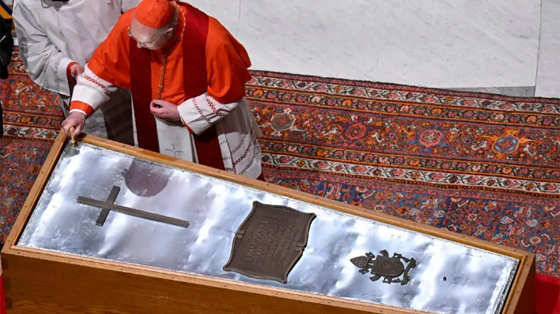 Vào lúc 8 giờ tối thứ Sáu ngày 25/4/2025, Đức Hồng y Kevin Farrell, Nhiếp chính của Giáo hội sau khi Đức Thánh Cha qua đời, đã chủ sự nghi lễ phụng vụ tại Đền thờ Thánh Phêrô niêm phong và đóng nắp linh cữu của Đức Thánh Cha.