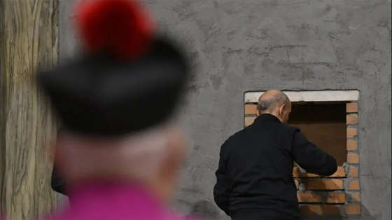 Đức Hồng y Giám quản và Đức Tổng Giám mục Trưởng ban Nghi lễ đặt hai viên gạch, bắt đầu giai đoạn cuối cùng của công việc xây tường niêm phong Cửa thánh. Nghi thức kết thúc với kinh Lạy Cha và phép lành.