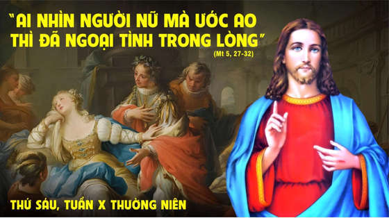 Khi ấy, Chúa Giêsu phán cùng các môn đệ rằng: “Các con đã nghe dạy người xưa rằng: “Chớ ngoại tình”. Phần Thầy, Thầy bảo các con: Ai nhìn người nữ mà ước ao phạm tội, thì đã ngoại tình với người ấy trong lòng rồi. Nếu mắt bên phải con làm con vấp phạm, thì hãy móc quăng khỏi con đi: thà mất một chi thể còn lợi cho con hơn là toàn thân bị ném vào hoả ngục. Và nếu tay phải con làm con vấp phạm, thì hãy chặt mà quăng đi, vì thà mất một chi thể còn lợi cho con hơn là toàn thân bị ném vào hoả ngục.