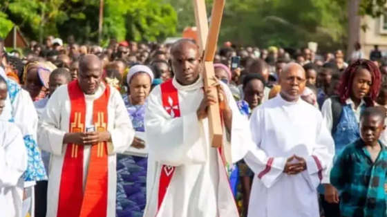 Chặng đàng Thánh giá đang được thực hiện tại Notre-Dame de la Sagesse (Đại học Kinshasa ở DRC).