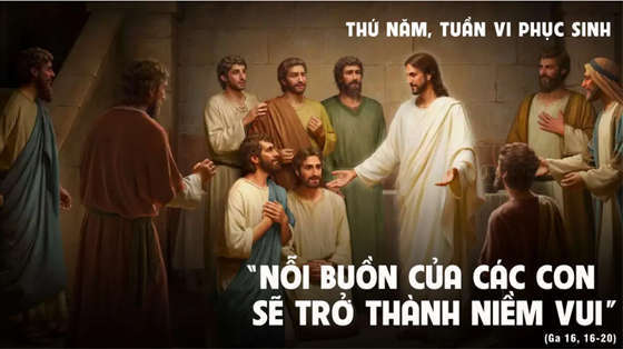 Chúa Giêsu nhận thấy họ muốn hỏi Người, nên Người bảo họ: “Các con hỏi nhau vì Thầy đã nói: Một ít nữa các con sẽ không thấy Thầy, rồi lại một ít nữa các con sẽ thấy Thầy. Thật, Thầy bảo thật với các con: các con sẽ than van khóc lóc, còn thế gian sẽ vui mừng. Các con sẽ buồn sầu; nhưng nỗi buồn của các con sẽ trở thành niềm vui”.