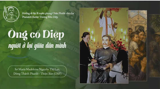 Bây giờ người ta đang nói nhiều về việc ông được tuyên phong Chân phước. Con nghe mà thấy vui cái bụng. Vui như chuyện của người thân trong nhà được vinh danh vậy đó. Nghĩ kỹ lại, con thấy hình như ông vẫn vậy. Vẫn là “ông cố Diệp” của bà con mình. Vẫn gần, vẫn đơn sơ. Chỉ có điều, từ cánh đồng, con rạch, tàu dừa… con đường của ông bây giờ đã chạm tới bàn thờ của Hội thánh. Nghe thì xa, mà sao thấy cũng gần. Con nghĩ, chắc ông cũng không có ý “đi xa” tới vậy đâu. Ông chỉ sống trọn phần của mình thôi. Mà có khi, chính vì sống trọn cái phần đời mình như vậy, nên con đường mới tự nhiên mở ra. Thực sự con đường đi từ tàu dừa tới bàn thờ Hội thánh, xét cho cùng đâu có xa xôi gì. Nó chỉ dài bằng đúng một trái tim biết yêu thương cho tới tận cùng, yêu tới mức không còn giữ lại gì cho riêng mình, phải vậy không ông cố?
