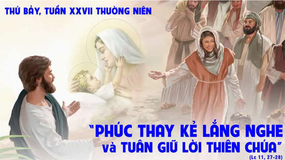 Khi ấy, Chúa Giêsu đang giảng cho dân chúng, thì từ giữa đám dân chúng, có một phụ nữ cất tiếng nói rằng: “Phúc cho dạ đã cưu mang Thầy và vú đã cho Thầy bú!” Nhưng Người phán rằng: “Những ai nghe và giữ lời Thiên Chúa thì có phúc hơn”.