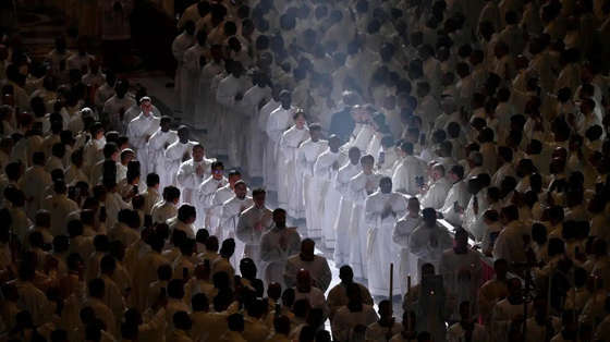 Vì thế, hôm nay tôi mời gọi anh em trước Trái Tim Chúa Kitô hãy lập lại lời “xin vâng” mà anh em đã thưa với Chúa và với Dân Thánh Người vào ngày anh em được thụ phong. Hãy để ân sủng uốn nắn anh em, và gìn giữ ngọn lửa Thánh Thần mà anh em đã lãnh nhận trong ngày được truyền chức, để khi kết hiệp với Người, anh em trở thành bí tích tình yêu Chúa Giêsu trong thế giới. Đừng nản lòng trước sự yếu đuối của mình: Chúa không tìm kiếm những linh mục hoàn hảo, nhưng là những trái tim khiêm nhường, rộng mở để được hoán cải và sẵn sàng yêu thương người khác như chính Người đã yêu thương chúng ta.
