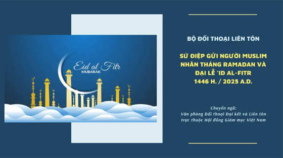 Nhân dịp đầu tháng Ramadan, Bộ Đối thoại Liên tôn xin gửi đến anh chị em những lời chúc nồng ấm nhất và tình bằng hữu chân thành. Thời gian chay tịnh, cầu nguyện và sẻ chia này chắc chắn là cơ hội quý báu để đến gần Thiên Chúa hơn và củng cố những giá trị cốt lõi của đức tin, lòng thương xót và tình liên đới.