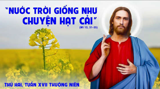Khi ấy, Chúa Giêsu phán một dụ ngôn khác cùng dân chúng rằng: “Nước trời giống như hạt cải người kia gieo trong ruộng mình. Hạt ấy bé nhỏ hơn mọi thứ hạt giống, nhưng khi mọc lên, thì lớn hơn mọi thứ rau cỏ, rồi thành cây, đến nỗi chim trời đến nương náu nơi ngành nó”.