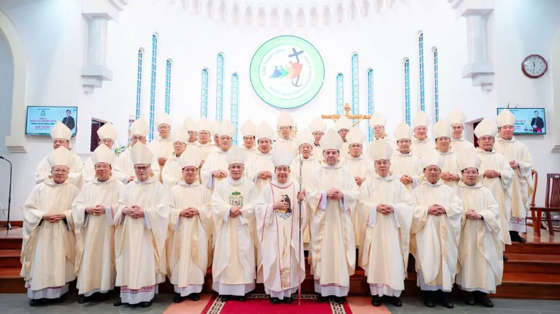 Thứ tự từ trái qua phải: Đức cha Phêrô Lê Tấn Lợi – Đức cha Đaminh Hoàng Minh Tiến – Đức cha Gioan Baotixita Nguyễn Huy Bắc