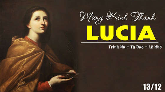 Lạy Chúa, hôm nay chúng con mừng kỷ niệm ngày thánh nữ Lucia đồng trinh, tử đạo, vinh hiển bước vào trời. Xin Chúa nhận lời người cầu thay nguyện giúp mà khơi lửa yêu mến trong lòng chúng con để mai sau chúng con được chiêm ngưỡng Chúa vô cùng vinh hiển( Lời nguyện ca nhập lễ, lễ thánh Lucia, trinh nữ, tử đạo).