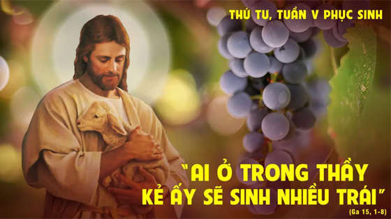 Khi ấy, Chúa Giêsu phán cùng các môn đệ rằng: “Thầy là cây nho thật, và Cha Thầy là người trồng nho. Nhành nào trong Thầy không sinh trái thì Người chặt đi, còn nhành nào trong Thầy không sinh trái thì Người chặt đi, còn nhành nào sinh trái thì Người tỉa sạch để nó sai trái hơn. Các con đã được tỉa sạch nhờ lời Thầy đã nói với các con. Các con ở trong Thầy, và Thầy ở trong các con. Cũng như nhành nho tự nó không thể sinh trái được, nếu không dính liền với cây nho; các con cũng vậy, nếu không ở trong Thầy. “Thầy là cây nho, các con là nhành. Ai ở trong Thầy và Thầy ở trong người ấy, kẻ ấy sẽ sinh nhiều trái, vì không có Thầy, các con không thể làm được gì. Ai không ở trong Thầy, thì bị vứt ra ngoài như nhành nho, và sẽ khô héo, người ta sẽ thu lại, quăng vào lửa cho nó cháy đi. “Nếu các con ở trong Thầy, và lời Thầy ở trong các con, thì các con muốn gì, cứ xin, và sẽ được. Ðây là điều làm Cha Thầy được vinh hiển là các con sinh nhiều trái, và như thế các con trở nên môn đệ của Thầy”.