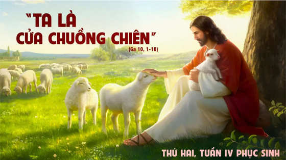 Khi ấy, Chúa Giêsu phán rằng: “Thật, Ta bảo thật cùng các ngươi, ai không qua cửa mà vào chuồng chiên, nhưng trèo vào lối khác, thì người ấy là kẻ trộm cướp. Còn ai qua cửa mà vào, thì là kẻ chăn chiên. Kẻ ấy sẽ được người giữ cửa mở cho, và chiên nghe theo tiếng kẻ ấy. Kẻ ấy sẽ gọi đích danh từng con chiên mình và dẫn ra. Khi đã lùa chiên mình ra ngoài, kẻ ấy đi trước, và chiên theo sau, vì chúng quen tiếng kẻ ấy. Chúng sẽ không theo người lạ, trái lại, còn trốn tránh, vì chúng không quen tiếng người lạ”.