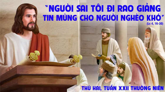 Khi ấy, Chúa Giêsu trở về Nadarét, nơi Người sinh trưởng, và theo thói quen của Người, thì ngày Sabbat, Người vào hội đường. Người đứng dậy để đọc sách. Người ta trao cho Người sách tiên tri Isaia. Mở sách ra, Người gặp ngay đoạn chép rằng: “Thánh Thần Chúa ngự trên tôi, vì Ngài xức dầu cho tôi, sai tôi đi rao giảng Tin Mừng cho người nghèo khó, thuyên chữa những tâm hồn sám hối, loan truyền sự giải thoát cho kẻ bị giam cầm, cho người mù được trông thấy, trả tự do cho những kẻ bị áp bức, công bố năm hồng ân và ngày khen thưởng”.