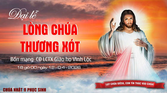 Thánh lễ Đại Lễ Lòng Chúa Thương Xót “BỔN MẠNG CĐ LCTX GIÁO HỌ VĨNH LỘC”. Lúc 18giờ00 ngày 12.04.2026. tại Giáo họ Vĩnh Lộc. Được trực tiếp để phục vụ: Bệnh nhân, những người đau yếu, tản tật không thể đến nhà thờ được! Kính mời quý anh chị cùng hiệp thông cầu nguyện.