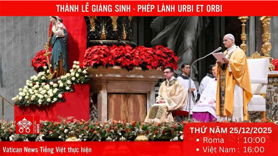 Vatican News Tiếng Việt truyền hình trực tiếp Thánh lễ Giáng sinh 2025 và Phép lành toàn xá Urbi et Orbi vào lúc 10g00 giờ Roma (tức 16g00 giờ Việt Nam) thứ Năm ngày 25/12/2025.