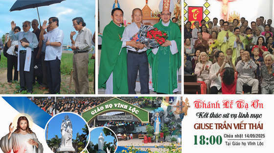 Thánh lễ Tạ Ơn Kết Thúc Sứ Vụ Mục Tử Tại Giáo họ Vĩnh Lộc Của Linh Mục Giuse Trần Viết Thái. Lúc 18giờ00 ngày 14.09.2025. tại Giáo họ Vĩnh Lộc. Được trực tiếp để phục vụ: Bệnh nhân, những người đau yếu, tản tật không thể đến nhà thờ được! Kính mời quý anh chị cùng hiệp thông cầu nguyện.
