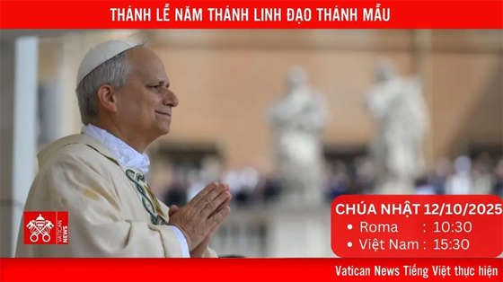 Vatican News Tiếng Việt truyền hình trực tiếp “Thánh lễ Năm thánh Linh đạo Thánh Mẫu” do Đức Giáo hoàng Lêô XIV chủ sự tại Quảng trường Thánh Phêrô vào Chúa nhật 12/10/2025 với múi giờ: Roma: 10:00, Việt Nam 15:00.