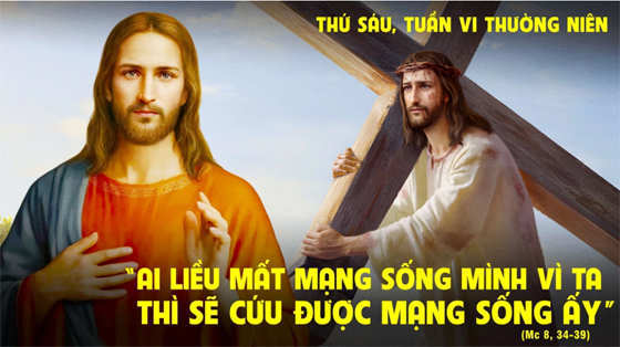 Khi ấy, Chúa Giêsu tập họp dân chúng cùng các môn đệ lại, và phán: “Ai muốn theo Ta, hãy từ bỏ mình, vác thập giá mình mà theo Ta. Quả thật, ai muốn cứu mạng sống mình, thì sẽ mất. Còn ai chịu mất mạng sống mình vì Ta và vì Phúc Âm, thì sẽ cứu được mạng sống mình. Vì chưng được lời lãi cả thế gian mà mất mạng sống mình, thì nào được ích gì? Và người ta lấy gì mà đánh đổi mạng sống mình? Ai hổ thẹn vì Ta và vì lời Ta trong thế hệ ngoại tình và tội lỗi này, thì Con Người cũng sẽ hổ thẹn từ khước nó, khi Người đến trong vinh quang của Cha Người cùng với các thần thánh”.