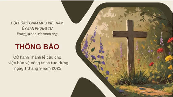 Sau đây là nguyên văn thông báo của Ủy ban Phụng tự trực thuộc Hội đồng Giám mục Việt Nam về việc cử hành Thánh lễ cầu cho việc bảo vệ công trình tạo dựng ngày 1 tháng 9 năm 2025.