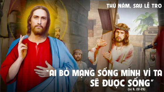 Chúa nói với mọi người rằng: “Ai muốn theo Ta, hãy bỏ mình, vác thập giá mình hằng ngày mà theo Ta. Vì chưng, ai muốn giữ mạng sống mình, thì sẽ mất; còn ai mất mạng sống vì Ta, sẽ được sống. Vậy nếu con người được lời lãi cả thế gian, mà phải thiệt mất mạng sống, thì được ích gì?”