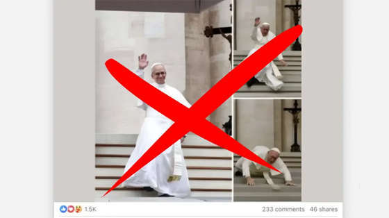 Những bức ảnh giả mạo ở trên được tạo bằng trí tuệ nhân tạo (AI) cho thấy Đức Giáo hoàng Lêô XIV dường như bị ngã trên bậc tam cấp bên ngoài Vương cung thánh đường Thánh Phêrô đã lan truyền trên mạng vào tháng 6.Bạn đã nghe Đức Thánh Cha Lêô XIV nói gì về Charlie Kirk hay Tổng thống Donald Trump chưa? Rồi những suy nghĩ của ngài về cuộc Quang lâm, hay việc hỏa táng có được phép hay không?