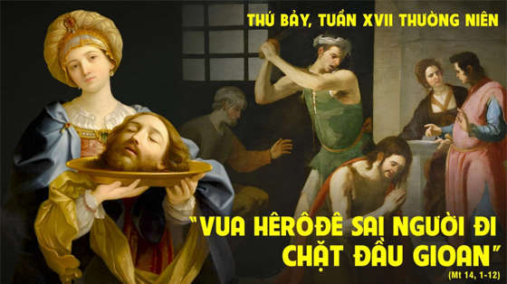 Khi ấy quận vương Hêrôđê nghe danh tiếng Chúa Giêsu, thì nói với những kẻ hầu cận rằng: “Người này là Gioan Tẩy Giả, ông từ cõi chết sống lại, nên mới làm được các phép lạ như vậy”. Tại vì Hêrôđia vợ của anh mình mà vua Hêrôđê đã bắt trói Gioan tống ngục, bởi Gioan đã nói với vua rằng: “Nhà vua không được lấy bà ấy làm vợ”. Vua muốn giết Gioan, nhưng lại sợ dân chúng, vì họ coi Gioan như một tiên tri. Nhân ngày sinh nhật của Hêrôđê, con gái Hêrôđia nhảy múa trước mặt mọi người, và đã làm cho Hêrôđê vui thích. Bởi đấy vua thề hứa sẽ ban cho nó bất cứ điều gì nó xin. Ðược mẹ nó dặn trước, nên nó nói: “Xin vua đặt đầu Gioan Tẩy Giả trên đĩa này cho con”. Vua lo buồn, nhưng vì đã trót thề rồi, và vì các người đang dự tiệc, nên đã truyền làm như vậy. Ông sai người đi chặt đầu Gioan trong ngục, và để đầu Gioan trên đĩa đem trao cho cô gái, và nó đem cho mẹ nó. Các môn đồ của Gioan đến lấy xác thầy và chôn cất, rồi đi báo tin cho Chúa Giêsu.