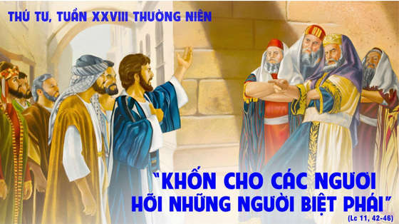 Khi ấy, Chúa phán rằng: “Khốn cho các ngươi, hỡi những người biệt phái! Vì các ngươi nộp thuế thập phân, bạc hà, vân hương, và các thứ rau, mà lại bỏ qua đức công bình và lòng yêu mến Thiên Chúa: Phải thi hành những điều này, và không được bỏ những điều kia. Khốn cho các ngươi, hỡi những người biệt phái! Vì các ngươi ưa thích ngồi ghế nhất trong các hội đường, và ưa thích được chào hỏi ngoài phố chợ. Khốn cho các ngươi, vì các ngươi giống những mồ mả không rõ rệt, người ta bước đi ở trên mà không hay biết!”